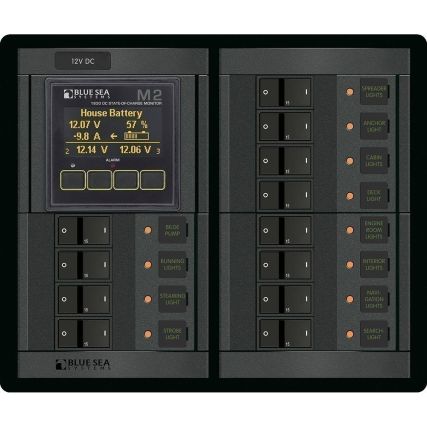 Blue Sea 1496 – 360 Panel – 12 Position 12v Flat Rocker M2 Multimeter W/Soc
