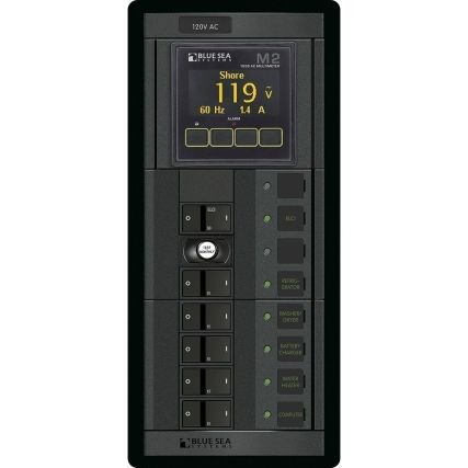 Blue Sea 1504 – 360 Panel – Elci + 5 Position 120v Ac Flat Rocker W/M2 Ac Multimeter