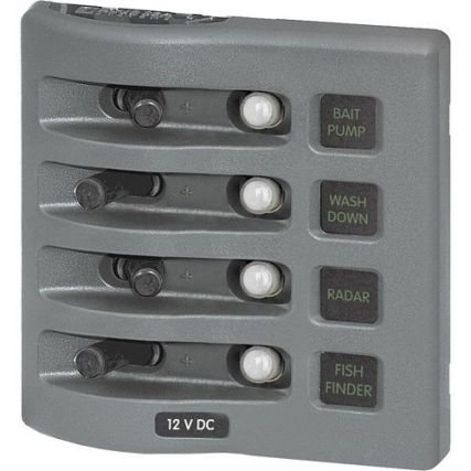 Blue Sea 4374 Weatherdeck Water Resistant Circuit Breaker Panel – 4 Position – Grey