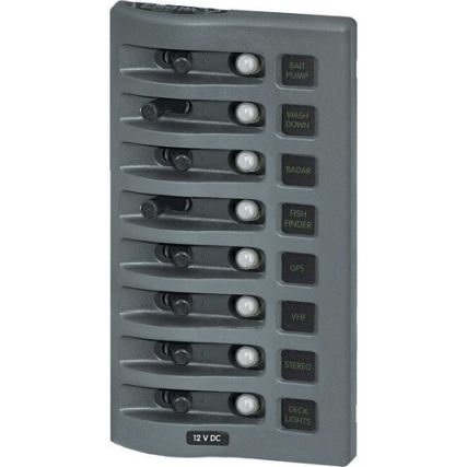 Blue Sea 4378 Weatherdeck Water Resistant Circuit Breaker Panel – 8 Position – Grey