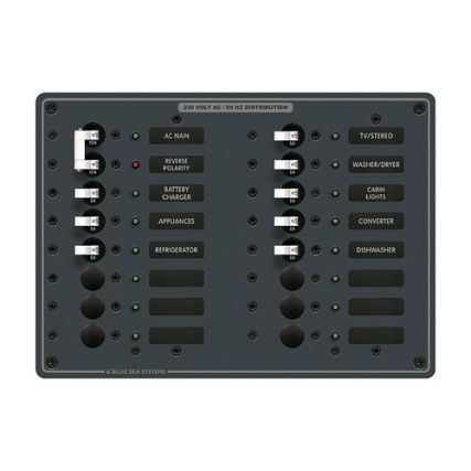 Blue Sea 8564 Breaker Panel – Ac Main + 14 Positions (European) – White