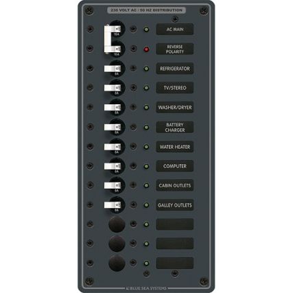 Blue Sea 8585 Breaker Panel – Ac Main + 11 Positions (European) – White