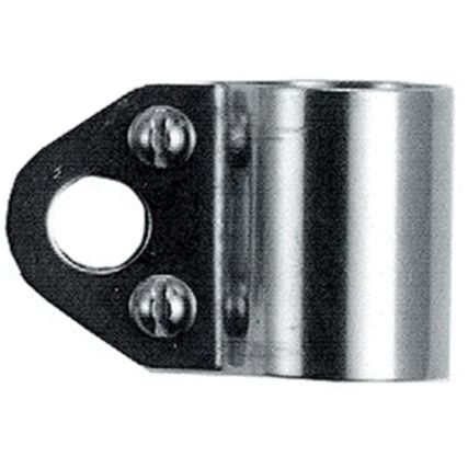 This fitting can be used on the stern rail and bow pulpit to terminate jaw fittings for lower or upper life lines. (1/2″ hole). The hole will not accept cast gate hooks.