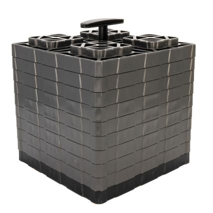 The Camco FasTen XL Leveling Blocks allow you to stack the interlocking blocks to the desired height for safe and easy leveling. The larger size has an increased weight capacity of blocks individually and in a stack, and also provides more surface area for leveling. Each block adds a full inch to stack height. Camco’s FasTen XL Leveling Blocks can be used with single wheels, dual wheels, hydraulic jacks, tongue jacks, stabilizer jacks, 5th wheel jacks, and tandem axles. The convenient carrying handle secures blocks together for storage and easily pulls up for carrying, or pushes down for more compact storage. Individual block measures: 10.5” x 10.5” x 1.5”. Stack height should not exceed 4-1/2 inches.
