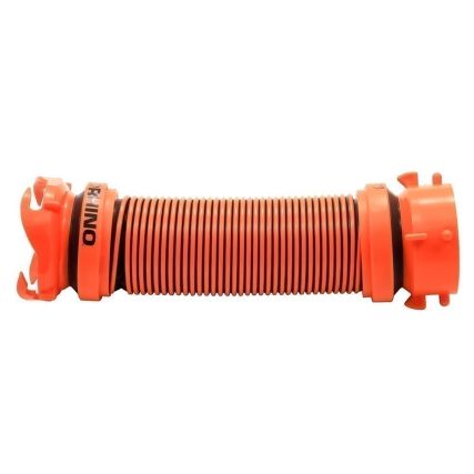 Camco’s RhinoEXTREME Compartment Sewer Hose is great for use in tight RV sewer compartments when attaching to your waste outlet can be difficult. To use, simply leave the compartment hose connected to your waste outlet and connect your RV sewer hose to the lug fitting on the end of the compartment hose. The hose extends to 2-feet long and has an exoskeleton design that bears the brunt of abrasions, helping prevent pinholes and leaks. You can bend or crush the hose and it will maintain its shape, or only extend the hose as much as you need and it will stay compressed. The attached fittings swivel for easy connection.