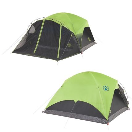 The Coleman 6-Person Dark Room Fast Pitch Dome Tent with Screen Room blocks 90% of sunlight so families can put the kids to bed early and festival goers can sleep in past sunrise. A separate floored screen room offers bug-free lounging, extra ventilation, and added sleeping space on warm, dry nights. If it does rain, this tent is guaranteed to keep you dry thanks to the WeatherTec system, which uses a tub floor with patented corner welds and protected seams to help keep water out. Additionally, extended awnings over the windows allow for improved air circulation without letting in rain. Meanwhile, a strong frame tested to withstand 35+ mph winds and rugged Polyguard 2X double-thick fabric mean this tent is designed to last season after season. Fast Pitch setup in minutes is simple with preattached, color-coded poles and hub and a snag-free Insta-Clip suspension. Illumiline reflective guylines are more visible at night so you don’t get tripped up if you need to take a walk in the dark. Inside, comfortably stretch out with room to fit 2 queen-size airbeds, neatly stash small items in mesh storage pockets sewn into the walls, and conveniently bring in electrical power with the E-Port feature. When it’s time to head home, the tent easily packs up into an expandable carrying bag until you’re off on your next adventure.