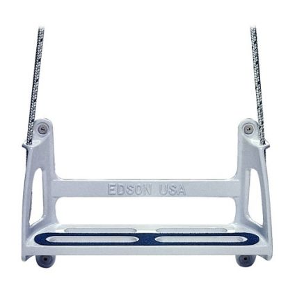 If the deck of your boat seems to be getting higher and your dinghy seems to be getting lower, get Edson’s “One-Step Boarding Step”. Edson makes getting onboard safer and easier. Cast in aluminum and coated with durable, glossy-white baked-on Urethane coating, this Step is designed to attach to your lifeline gate stanchions and hang against the side of your boat. It has neoprene bumpers that won’t mar your topsides, and the built-in handles give you a secure handhold. The Boarding Step is lightweight and compact, taking up minimal space in locker compared to cumbersome ladders. Comes complete with 6 ft. of braided line with stainless snap shackles. Wt. 5 lb (2.3 kg).