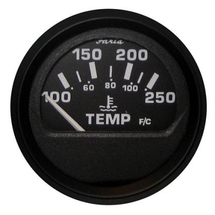 Faria Euro Black 2″ Water Temperature Gauge (100-250 Degreef)