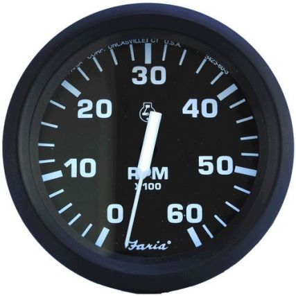 Faria Euro Black 4″ Tachometer – 6,000 Rpm (Gas – Inboard & I/O)