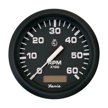 Faria Euro Black 4″ Tachometer W/Hourmeter – 6,000 Rpm (Gas – Inboard)