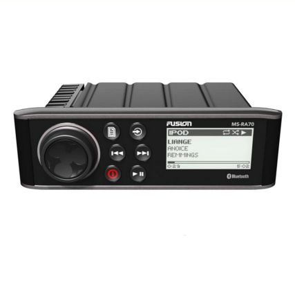 The MS-RA70 is Fusion’s sleekest value-packed marine stereo, designed to deliver a quality on-water entertainment experience by incorporating some of the latest marine technologies. The MS-RA70 is engineered to seamlessly replace any standard DIN sized non-marinized stereo without the need to reconfigure dash space. Clever styling gives the installer the option of either mounting the stereo with a conventional flush finish or integrating it flat into a glass helm, ensuring a high-end finish to the installation.