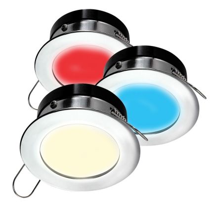 I2systems Apeiron A1120 Spring Mount Light – Round – Red, Warm White & Blue – Polished Chrome