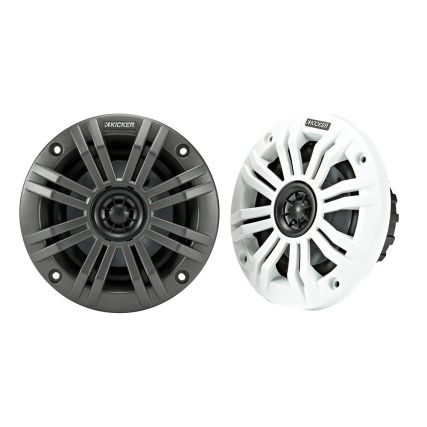 Kicker Km4 4″ Marine Coaxial Speakers W/1/2″ Tweeters – 2-Ohm, Charcoal & White