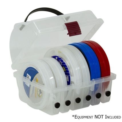 - Holds 6 leader spools 5″ diameter x 1″ wide