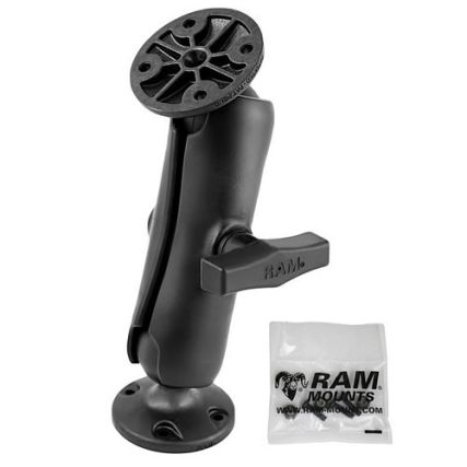 The RAP-101U-G4 consists of a 2.5″ diameter round base with the universal AMPS hole pattern, double socket arm and round adapter base that attaches directly to the back of the Garmin echo. Designed into the mount is a 1.5″ diameter patented rubber ball and socket system with adjustment points at both socket ends of the arm; this with RAM’s rubber ball and socket technology allows for almost infinite adjustment and perfect viewing angles. Included is hardware that is used to attach the Garmin echo to the RAM Mount.
