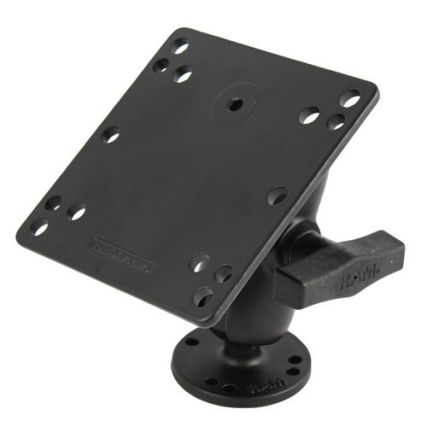 The RAM-101U-B-246 consists of a short double socket arm, 2.5″ diameter round base with the universal AMPS hole pattern and 4.75″ square plate with the VESA hole pattern. The VESA plate contains a 75mm X 75mm and 100mm X 100mm hole pattern. Designed into the mount is a 1.5″ diameter patented rubber ball and socket system with adjustment points at both socket ends of the arm. Rubber ball and socket technology allows for almost infinite adjustment and perfect viewing angles.