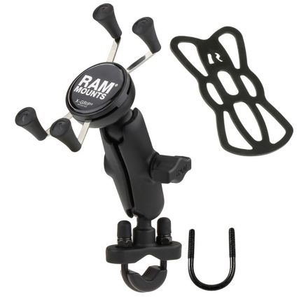 Ram Mount Handlebar Rail Mount W/Zinc Coated U-Bolt Base And Universal X-Grip Cell/Iphone Cradle