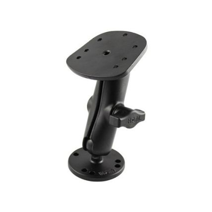 The RAM-B-107-1U, powder coated marine grade aluminum mount, consists of a double socket arm, one 2.5″ diameter round base and connecting Humminbird/Eagle/Lowrance marine base. The mount is designed with a 1″ diameter patented rubber ball and socket system that has adjustment points at the cradle base and bottom base. With a twist of the arm knob, you can move the marine mount to your optimum viewing position.