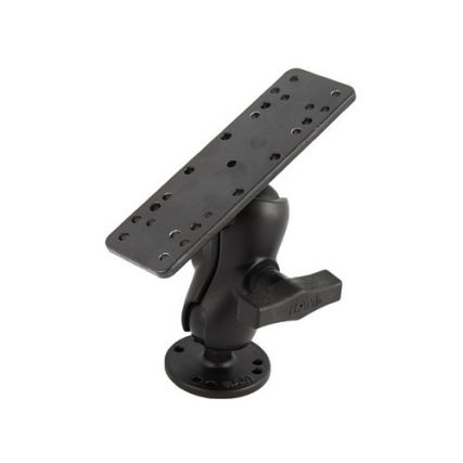 The RAM-111U-B consists of a 2.5″ diameter round base that contains the universal AMPs hole pattern, SHORT LENGTH double socket arm and 6.25″ x 2″ rectangle base. The rectangle base contains different combinations of pre-drilled holes which will match up to many electronic devices and mounts, including Marine GPS, CB Radios, Ham Radios, Gimbal Brackets and more.