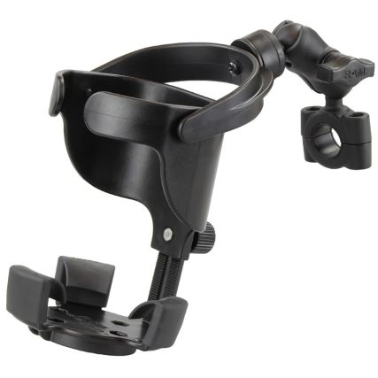 Designed for bigger insulated cups, plastic water bottles or even your reliable steel coffee cup, the Level Cup XL keeps your drink upright, regardless of the conditions. This kit includes a short arm and a Torque™ base that accommodates round rails from .5” through 1”. The oversized opening cradles the biggest of gulps and the adjustable bottom piece moves up and down to accommodate taller cups. The rubber feet flex to fit various sized cups as well. RAM® Mounts has refined the self-leveling action to keep your cups full.