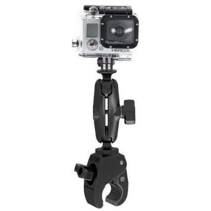 The RAP-B-400-GOP1U consists of the small Tough-Claw™ base, double socket arm and 1″ diameter ball with custom GoPro® Hero adapter. The RAM Tough-Claw™ is the perfect mounting base for quick and easy tool-less installation and removal on round, square, odd shaped rails and bars. The Tough-Claw™ can be clamped on rails from 0.625″ – 1.5″ outer diameter. The GoPro® Hero adapter attaches directly to the under-side of the camera, replacing the factory mounting bracket.