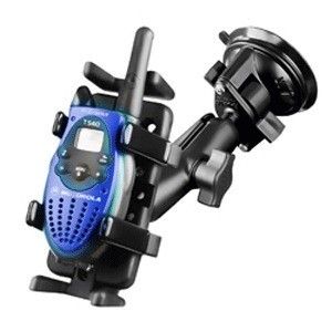Double socket arm, 3.25″ suction cup twist lock base and round base adapter that contains the universal AMPs hole pattern. The mount is designed with a RAM 1″ diameter patented rubber ball and socket system that has adjustment points at both ends of the double socket arm; this allowing for almost infinite adjustment and perfect viewing angles. The hole pattern found on the round base adapter will connect to many RAM cradles. The suction cup base is designed to have a strong hold on glass and non-porous plastic surfaces, including RAM adhesive disks.