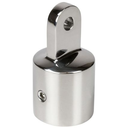 Top Fittings connect to tubing as a Top Cap or Top Insert for 3/4” or 7/8” round tubing or 1” square tubing. Top Fittings create an attachment point and function as a pivot point as part of a Bimini top system. Pin size 1/4”. Constructed of UV stabilized injection molded nylon. Available in black or white. *Stainless tube wall thickness 0.049”.
