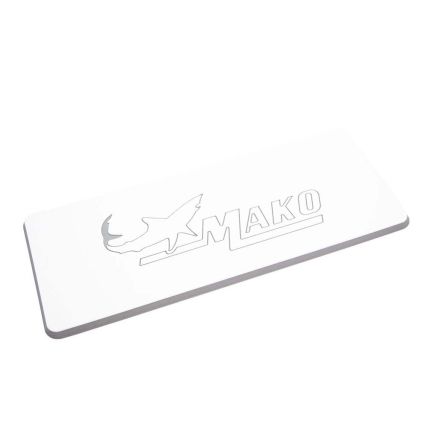 The Mako Boat Helm Pad is a large, 16″ x 39″ white over storm gray anti-fatigue pad with a routed Mako logo.