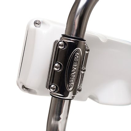 Seaview offers a solution to the age old problem of figuring out where to mount all your instruments on your sailboat. The Seaview Rail Pod allows you to mount smaller displays and instruments directly to the rail. Allowing you to postion the instrument where it is most optimal for you. Fits onto 1″, 1-1/8″ or 1-1/4″ rails. A single high polished 316 stainless steel clamp is used. Cables are routed internally through the clamp and into the rail. The Rail Pod housing is made from UV protected ABS plastic housing, and sealed with a water tight rubber gasket. Tamper resistant screws are used to hold the housing together. A reinforced base made from King Starboard is added for increased strength and stability (on certain models).