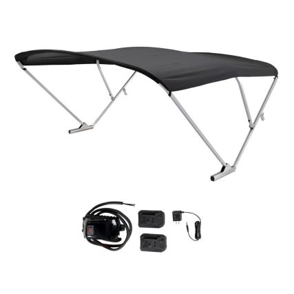 Sureshade Battery Powered Bimini – Clear Anodized Frame & Black Fabric