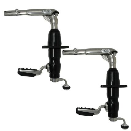 This mount has all of the durable, dependable features of the popular GS-390, but with a black hard coat anodized aluminum finish – providing superior protection from the elements and style. The GS-390BHC has a robust gusset and heavy-duty arm to withstand the torque and pressure created when using longer outrigger poles. This base allows anglers to easily deploy an outrigger’s vertical lift and horizontal rotation from the boat deck in rough seas. Additionally, the GS-390BHC comes equipped with our secure pin-locking technology and pairs well with TACO’s Deluxe Aluminum and Carbon Fiber Tele-Outriggers.