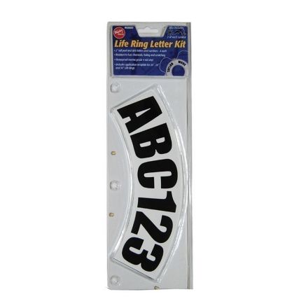 Now you can customize your life ring with our Taylor Made Lettering kit. Package includes 2″ black letters and numbers (4 ea.) plus symbols. Constructed from waterproff marine grade 4 mil. vinyl, resistant to fuel, chemicals fading and scratching. Application template included.