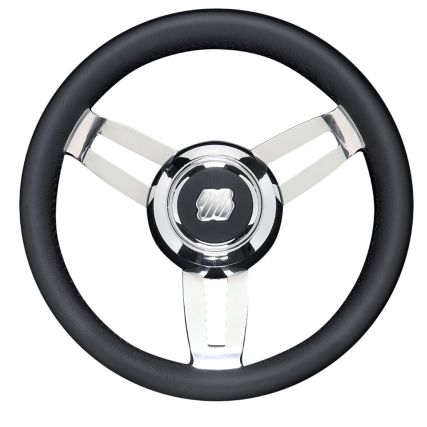 Uflex Morosini 13.8″ Steering Wheel – Black Polyurethane W/Stainless Steel Spokes & Chrome Hub