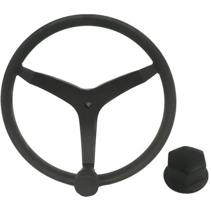 V46 – 13.5″ Stainless Steel Steering Wheel with Speed Knob & Chrome Nut – Black