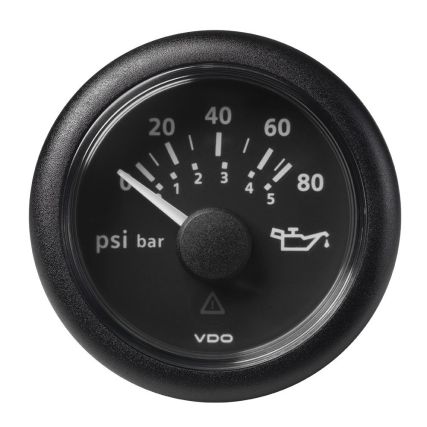 Veratron 52mm (2-1/16″) Viewline Oil Pressure Gauge 80 Psi/5 Bar – Black Dial & Round Bezel