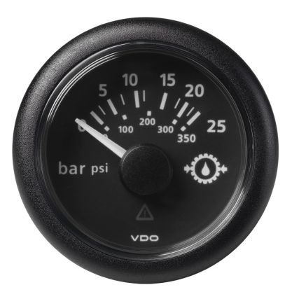 52MM (2-1/16″) ViewLine Transmission Oil Pressure 25 Bar/350 PSI – Black Dial & Round Bezel