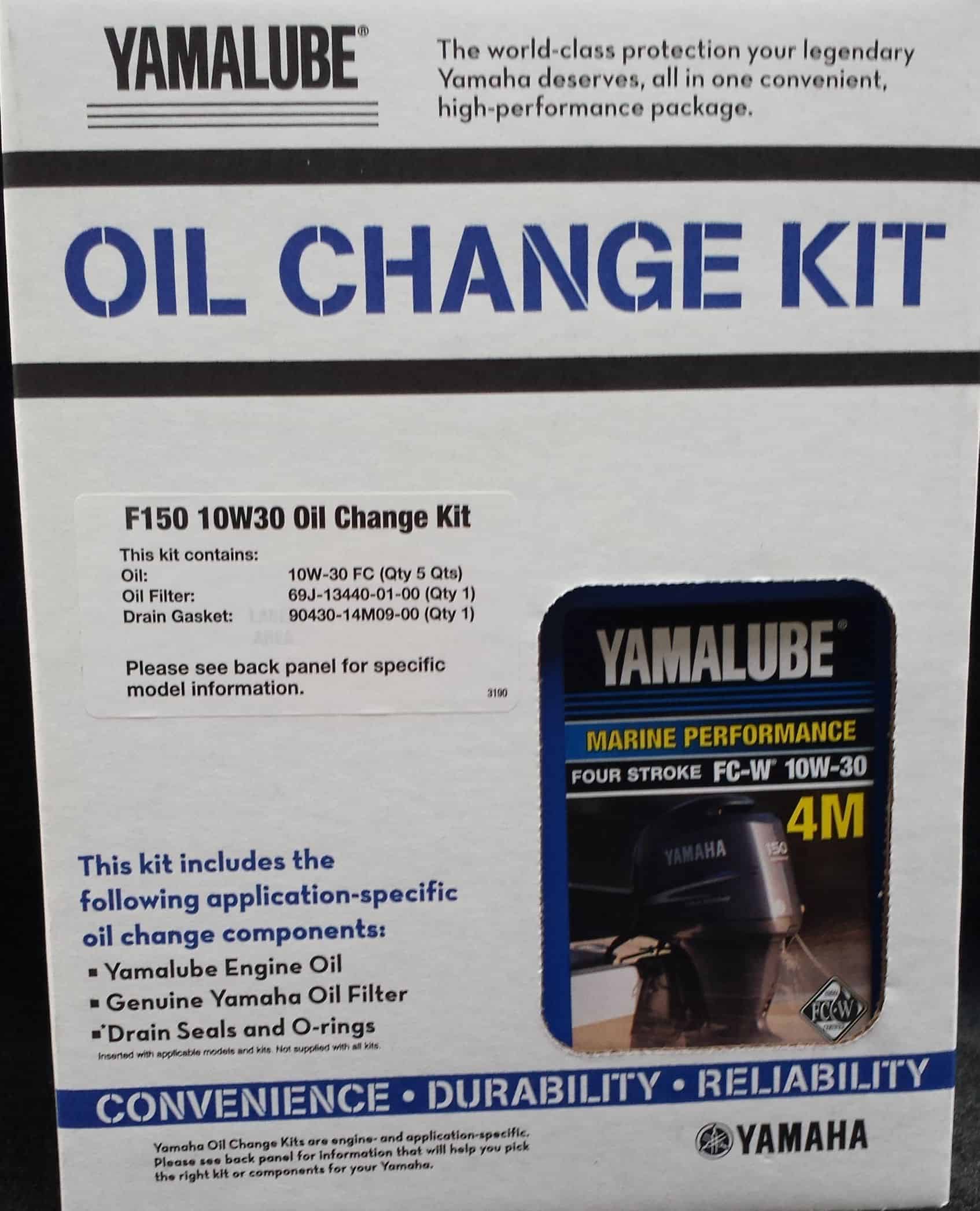 Fish Trail Boating Gear is a Authorized Yamaha Dealer. We only sell Genuine Yamaha Outboard Parts. This listing is for the Yamaha LUB-MRNMR-KT-10 F150 10W30 Oil Change Kit. Need help finding the correct Yamaha Outboard Part? Get your model and serial number and give us a call.